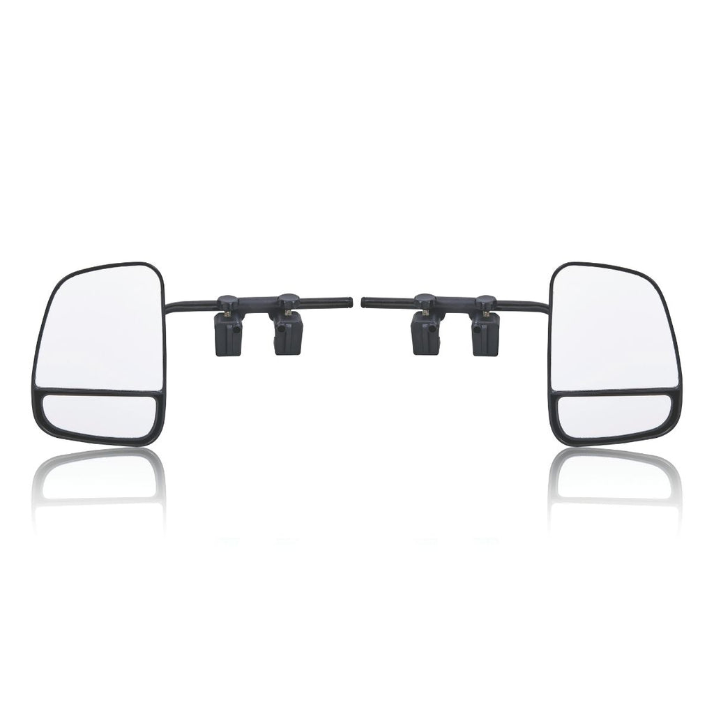 Upgrade your towing setup with Companion's deluxe towing mirrors. These mirrors attach effortlessly to most vehicles via an adjustable dual clamp system, giving you expanded visibility for confident journeys with your caravan, camper, or trailer. The dual glass configuration features a flat mirror for improved depth perception and a convex mirror for panoramic coverage, making towing safer and easier. Built tough from heavy-duty plastic and stainless steel, these mirrors resist harsh weather conditions and feature UV protection for extended outdoor use. Store them conveniently in the supplied carry bag when not needed. Trust Companion's deluxe towing mirrors to deliver dependable performance and practical design for every road adventure.