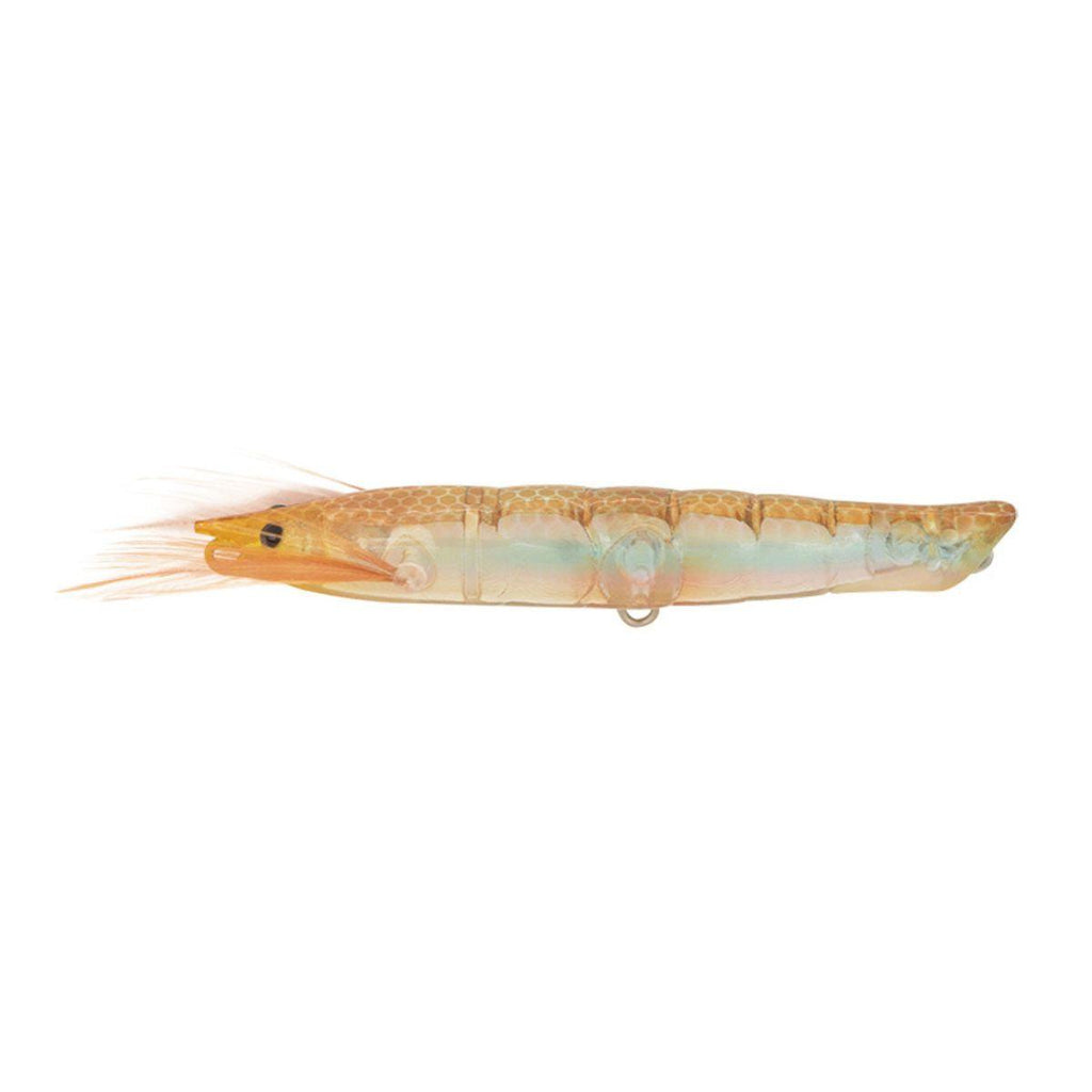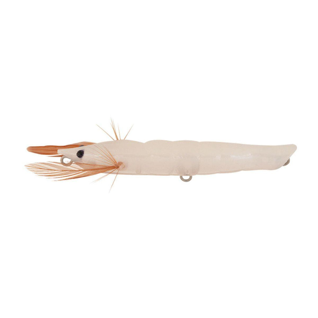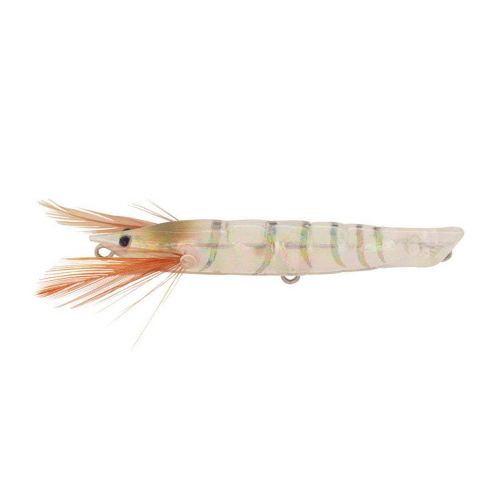 The Jackson Ebi Panic 70 is a topwater plug that imitates a shrimp. Cast and use a twitch action which will make the Ebi Panic act as if in a panic escaping a predator. It creates a walk the dog action with the tail cup generating a popping sound and splash looking like a skipping shrimp.